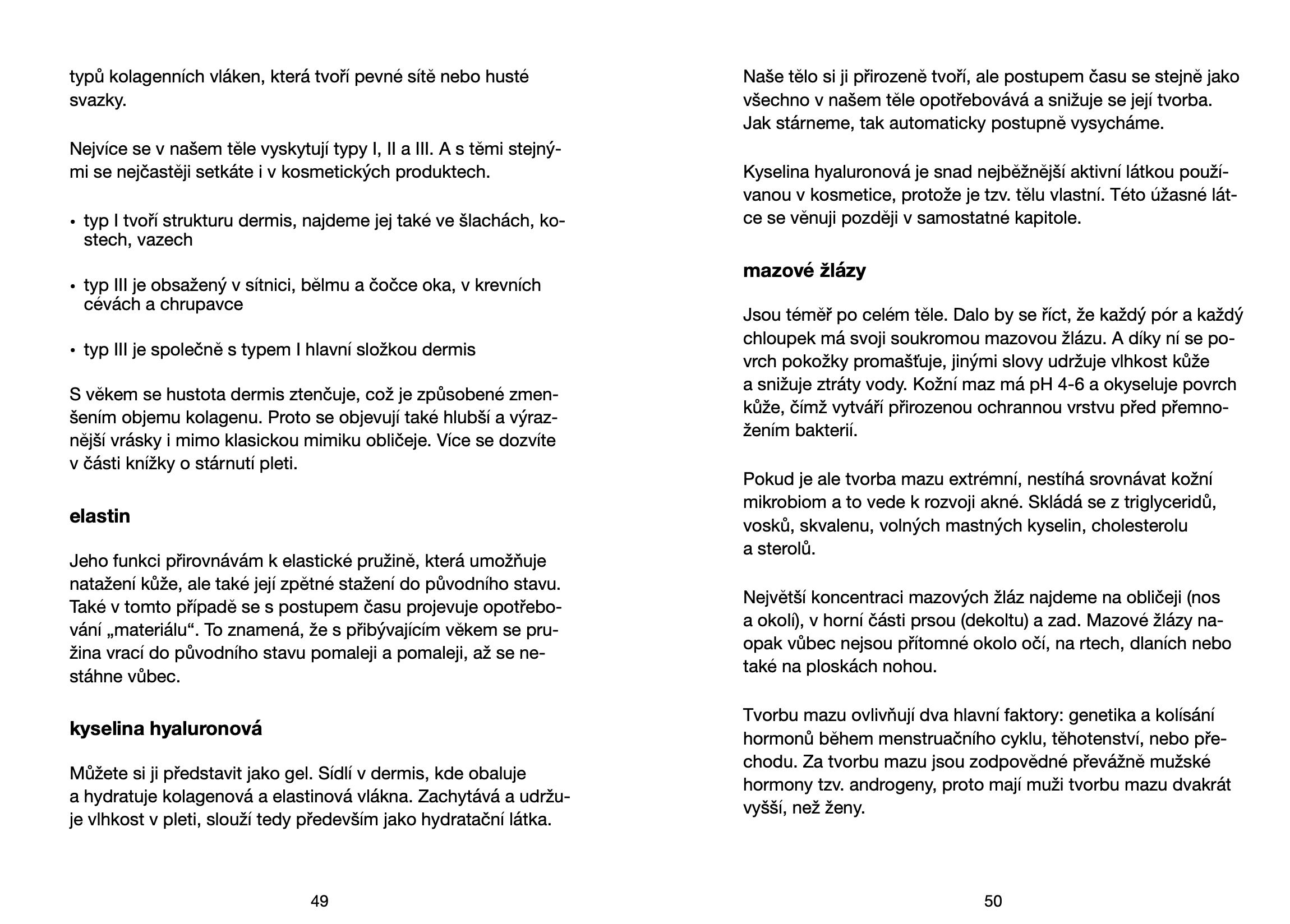 - v závěru knížky se věnuji na první pohled nekosmetickým oblastem, které ale mají na nás i naši pleť obrovský vliv jako je strava, spánek a psychika